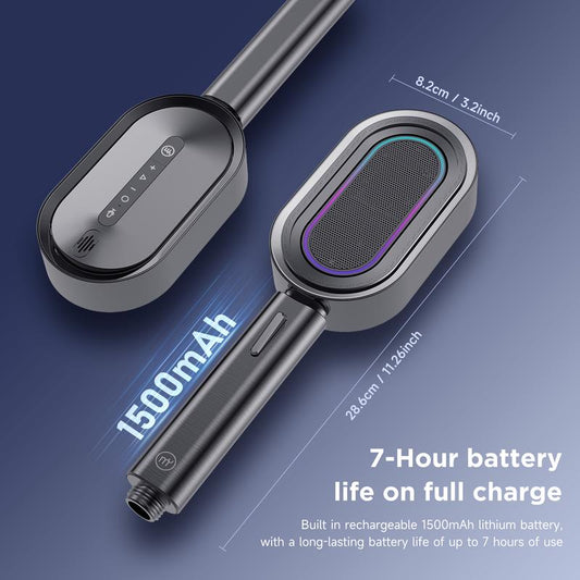 Karaoke Shower Head with Bluetooth Speaker and 16 Color RGB Lights Standalone Unit No Hose IPX7 Waterproof 7H Play Type C Call Function Red Dot Winner Singing Gift Audio Smartphone